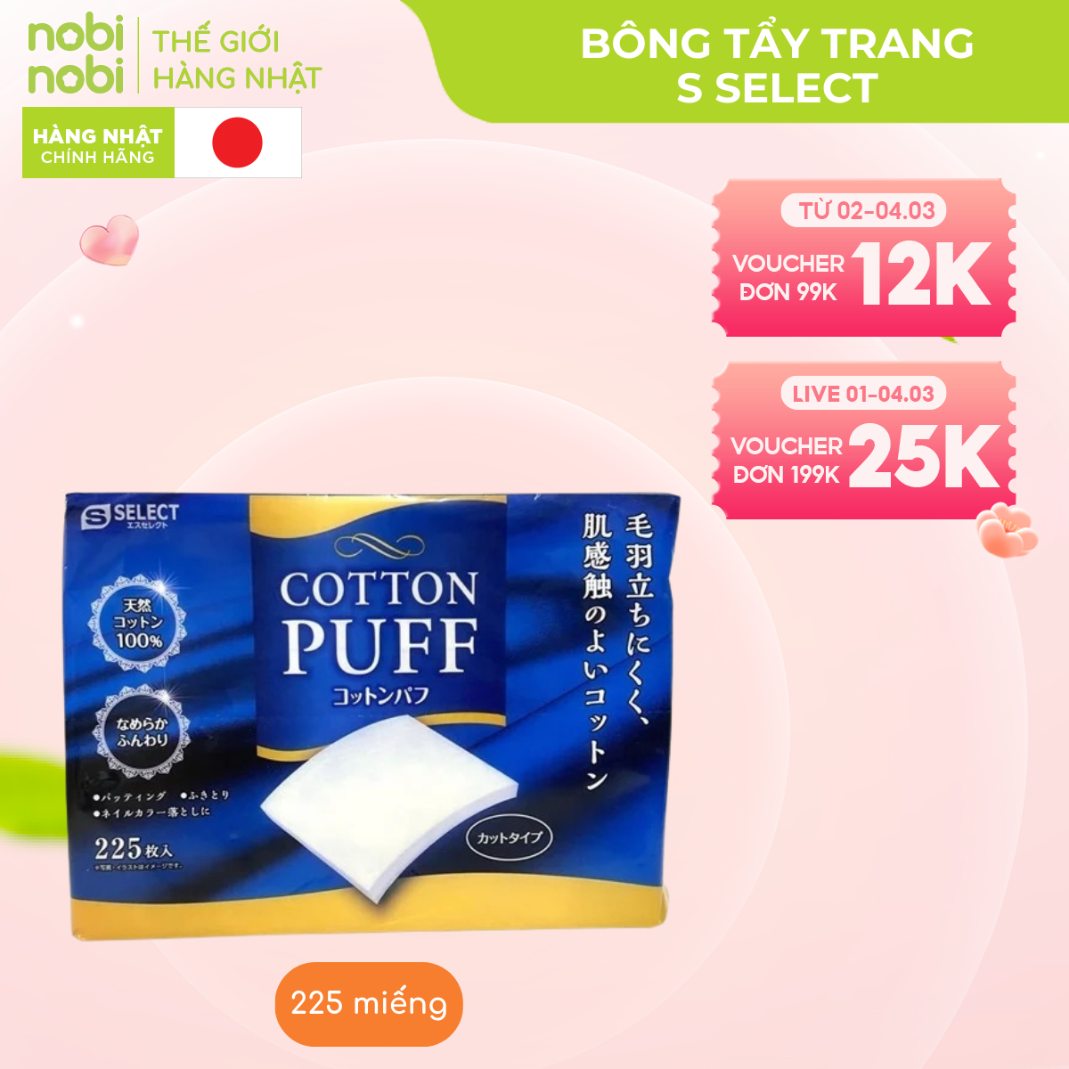 Bông Tẩy Trang S Select Cotton Mềm Mịn Giúp Làm Sạch Da Túi 225 miếng