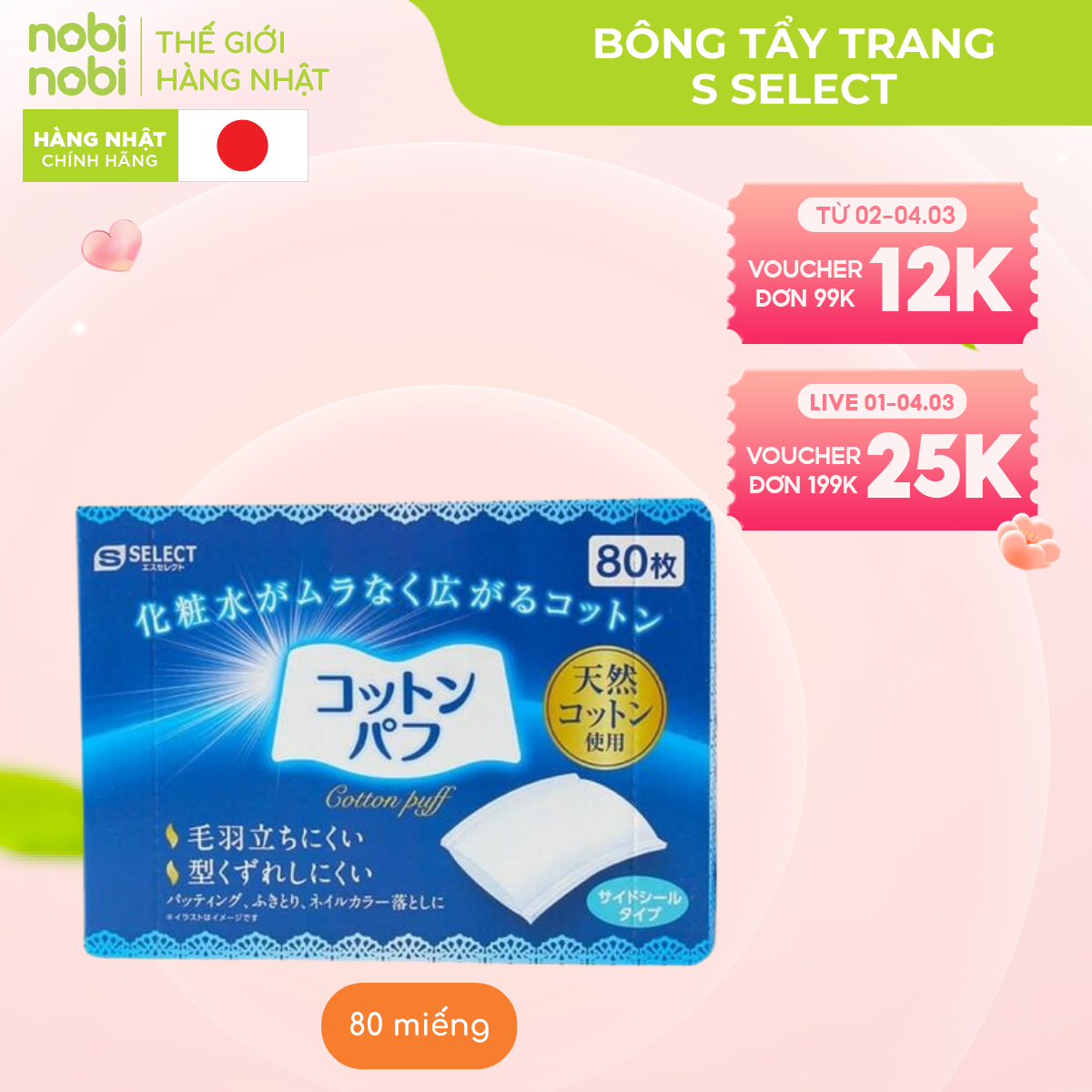 Bông Tẩy Trang S Select Cotton Mềm Mịn Giúp Làm Sạch Da 80 miếng