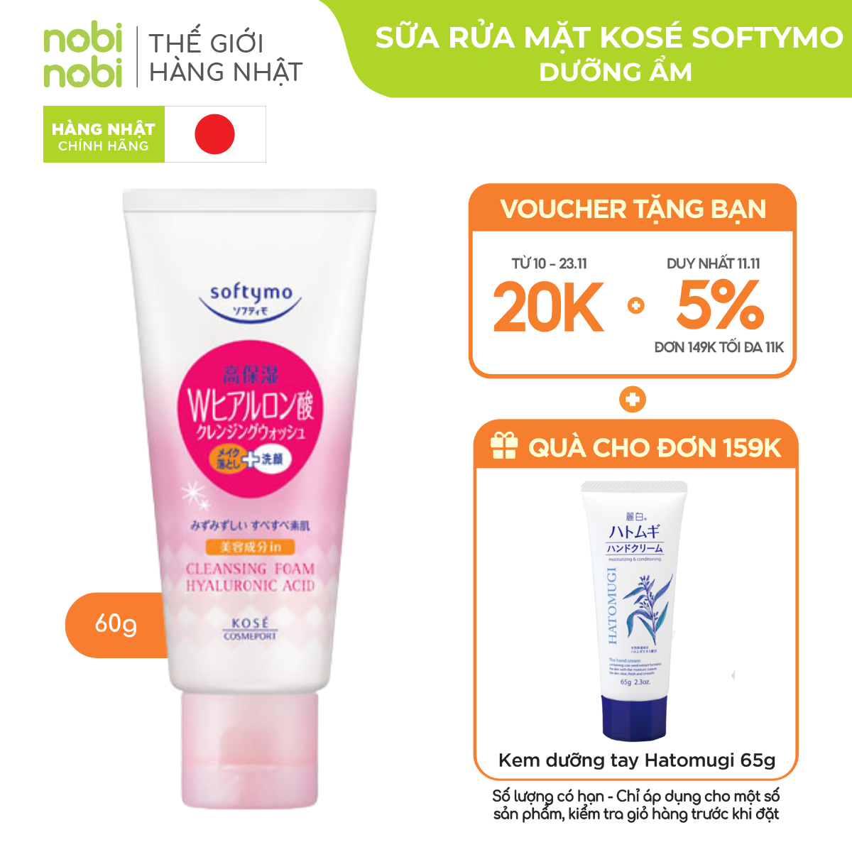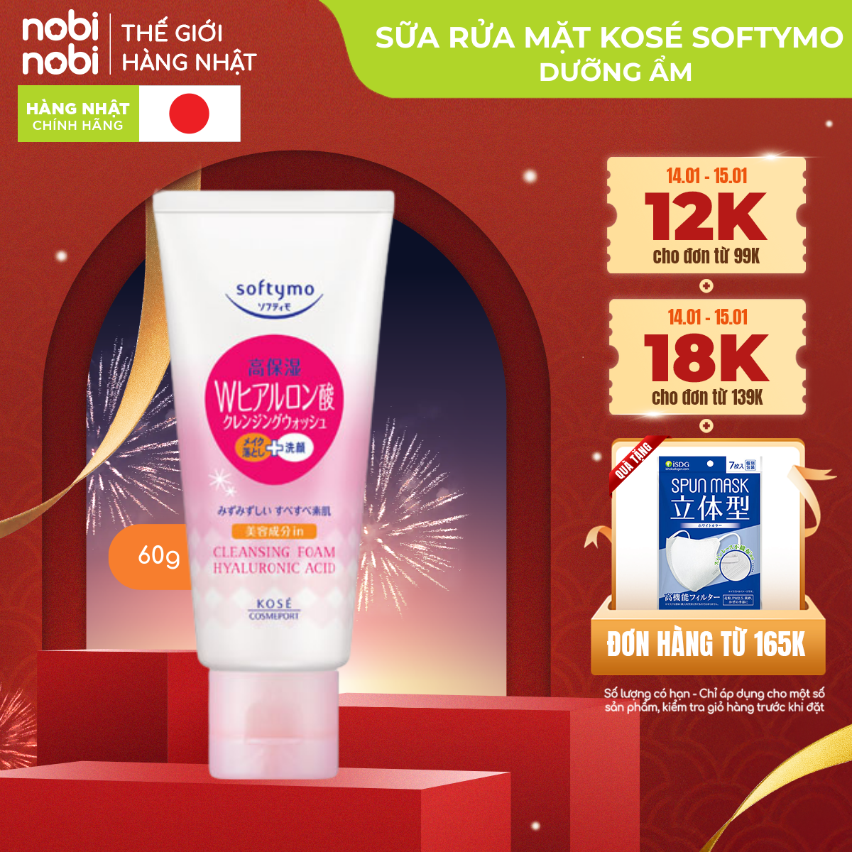 Sữa Rửa Mặt Kose Softymo Làm Sạch, Cấp Ẩm và Dưỡng Trắng Cho Da Loại Dưỡng Ẩm 60g