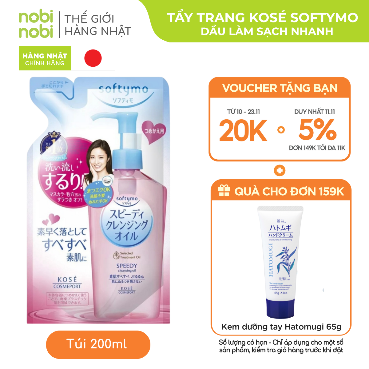 Dầu Tẩy Trang Kose Softymo Làm Sạch Nhanh Speedy Oil Túi Refill 200ml