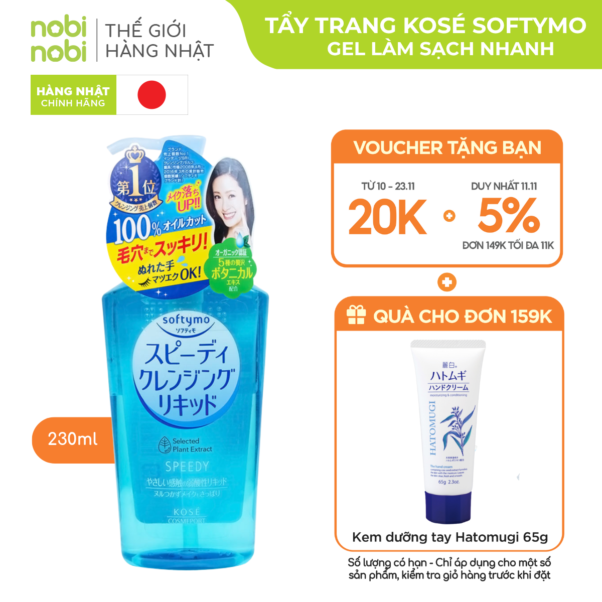 Dầu Tẩy Trang Kose Softymo Làm Sạch Nhanh 230ml.