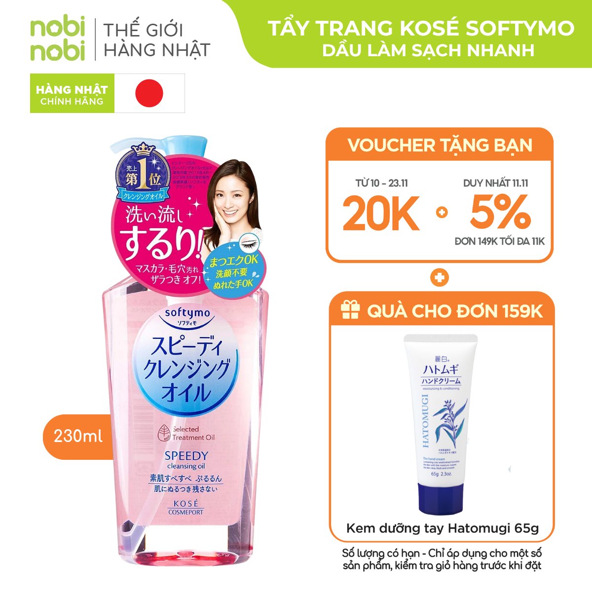 Dầu Tẩy Trang Kose Softymo Dưỡng Trắng Da 230ml