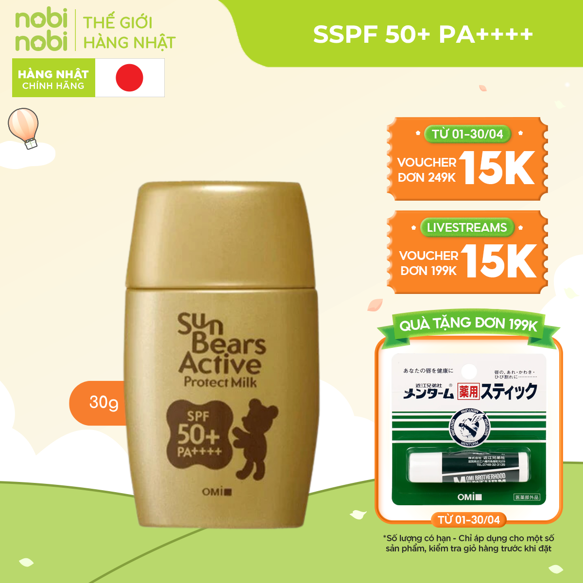 Kem Chống Nắng Omi Sun Bears Chống Thấm Nước và Lâu Trôi SPF50 PA++++ 30g (Nâu)