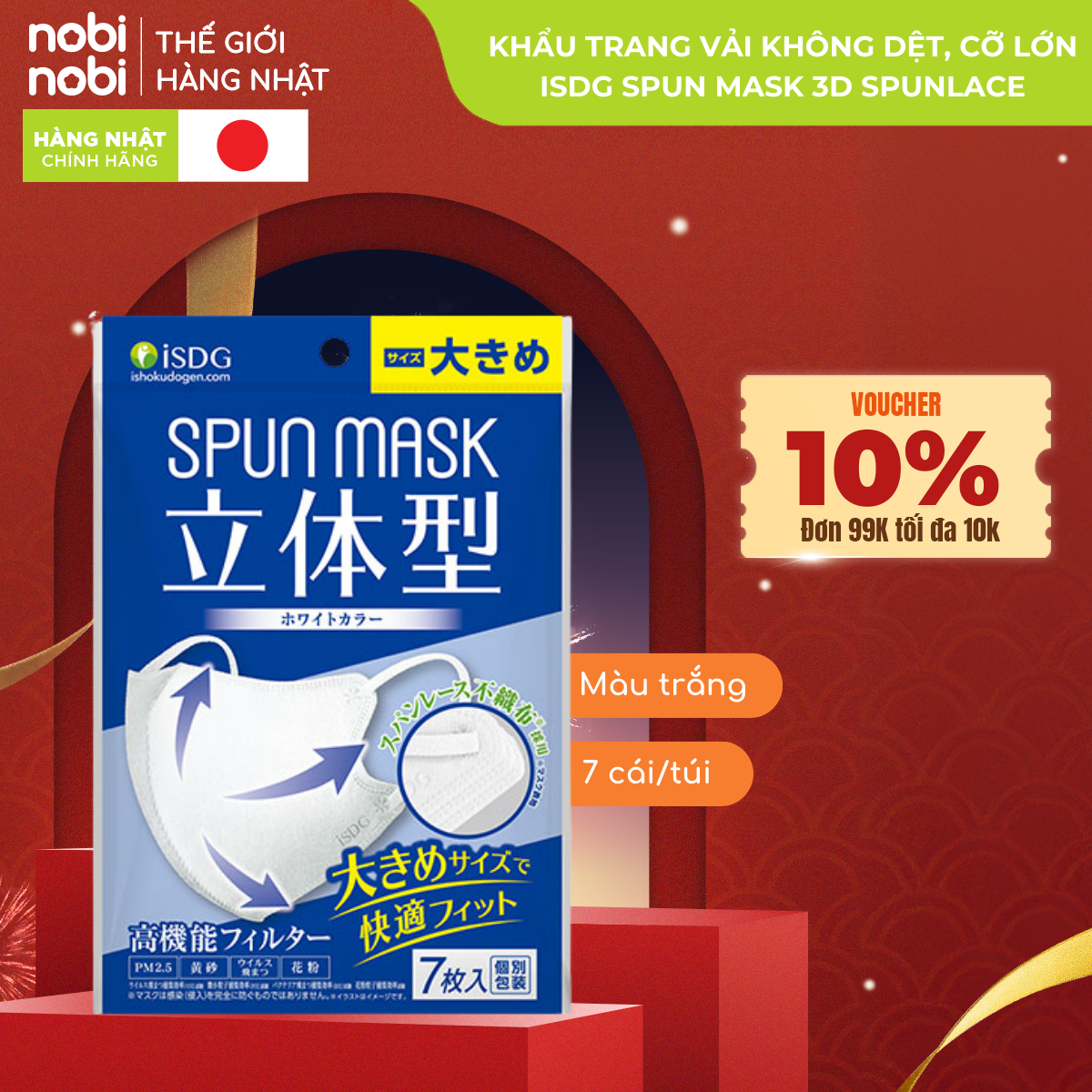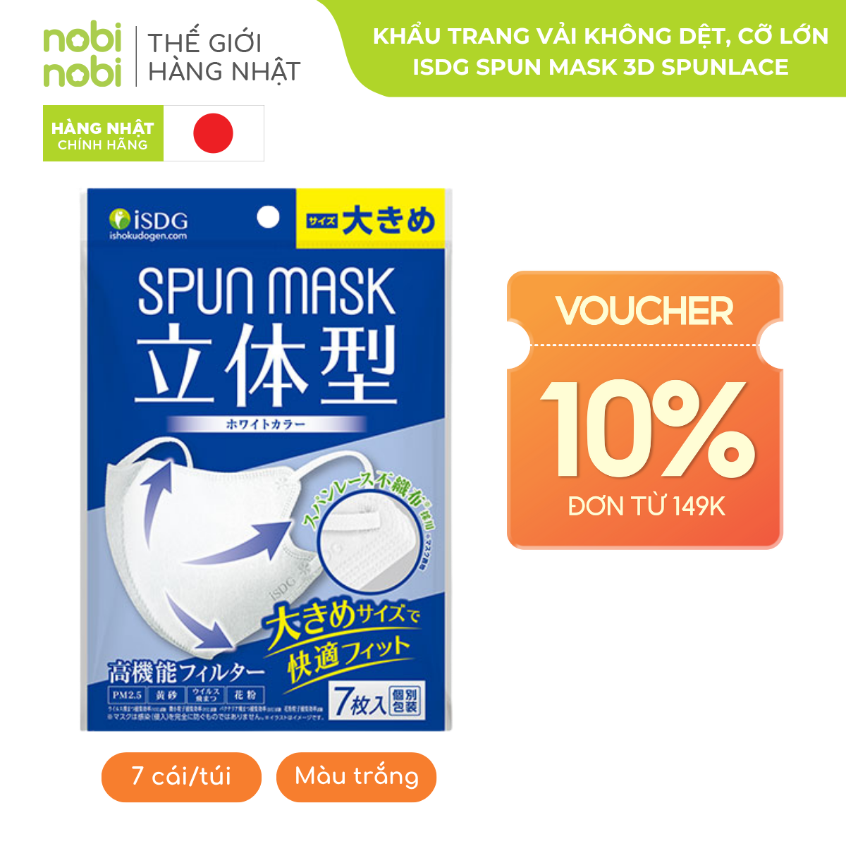Khẩu trang iSDG SPUN MASK 3D Spunlace Chống bụi mịn PM 2.5, loại to, 7 cái/túi (Màu trắng)