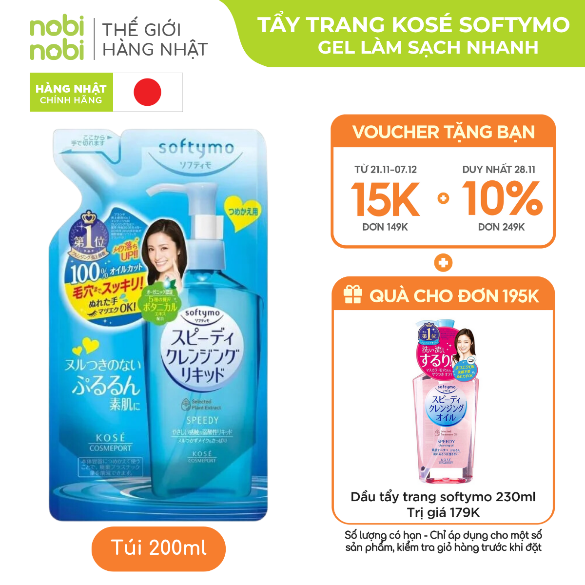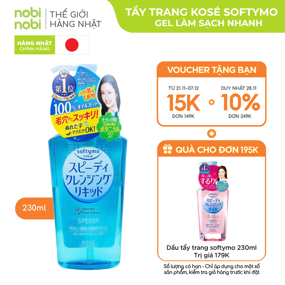 Nước Tẩy Trang Kosé Softymo Speedy Cleansing Liquid 230ml (Màu xanh): Da nhạy cảm và dễ lên mụn