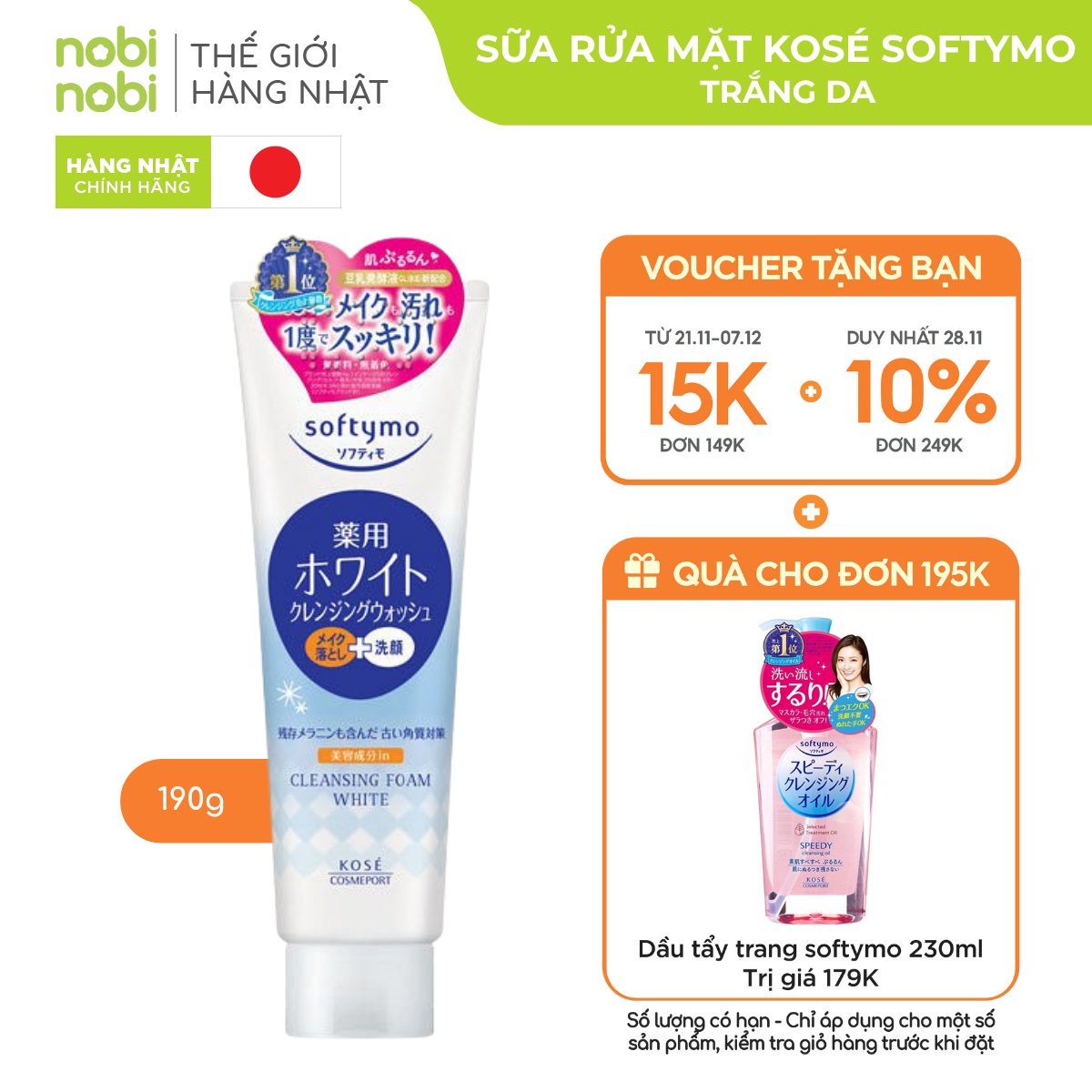 Dầu Tẩy Trang Kosé Softymo White Cleansing Oil 230ml (Màu vàng nhạt): Da khô