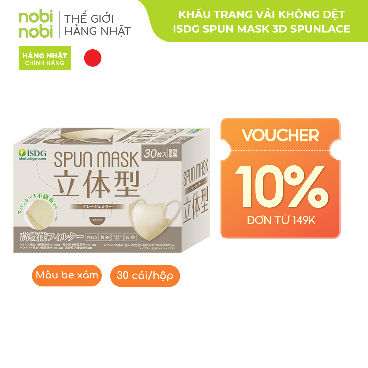 Khẩu trang iSDG SPUN MASK 3D Spunlace Chống bụi mịn PM 2.5, 30 cái/hộp (Màu xám be)