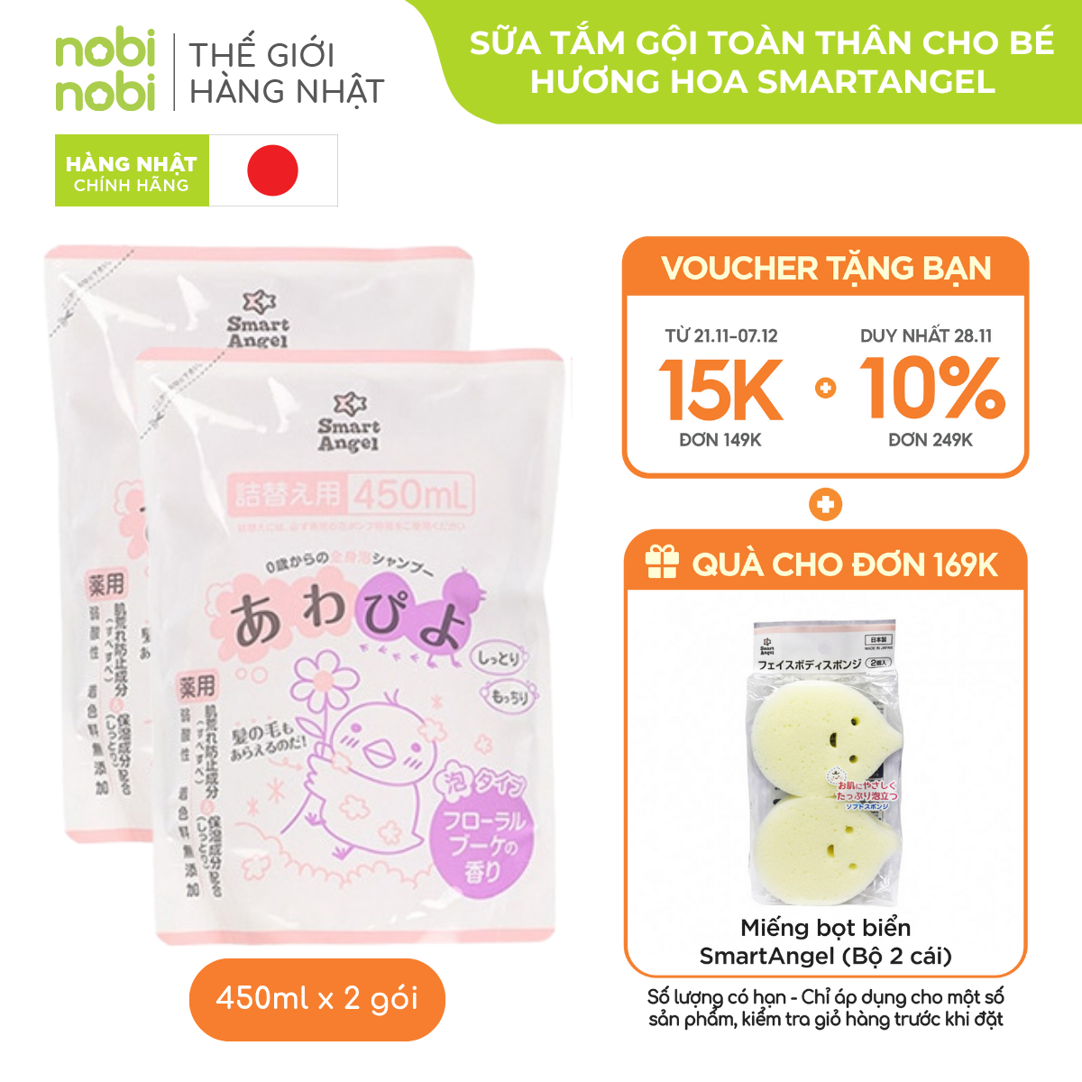 Sữa Tắm Gội Toàn Thân Cho Bé Awapiyo SmartAngel Dịu Nhẹ Lành Tính Nguyên Bản 450ml x 2 gói
