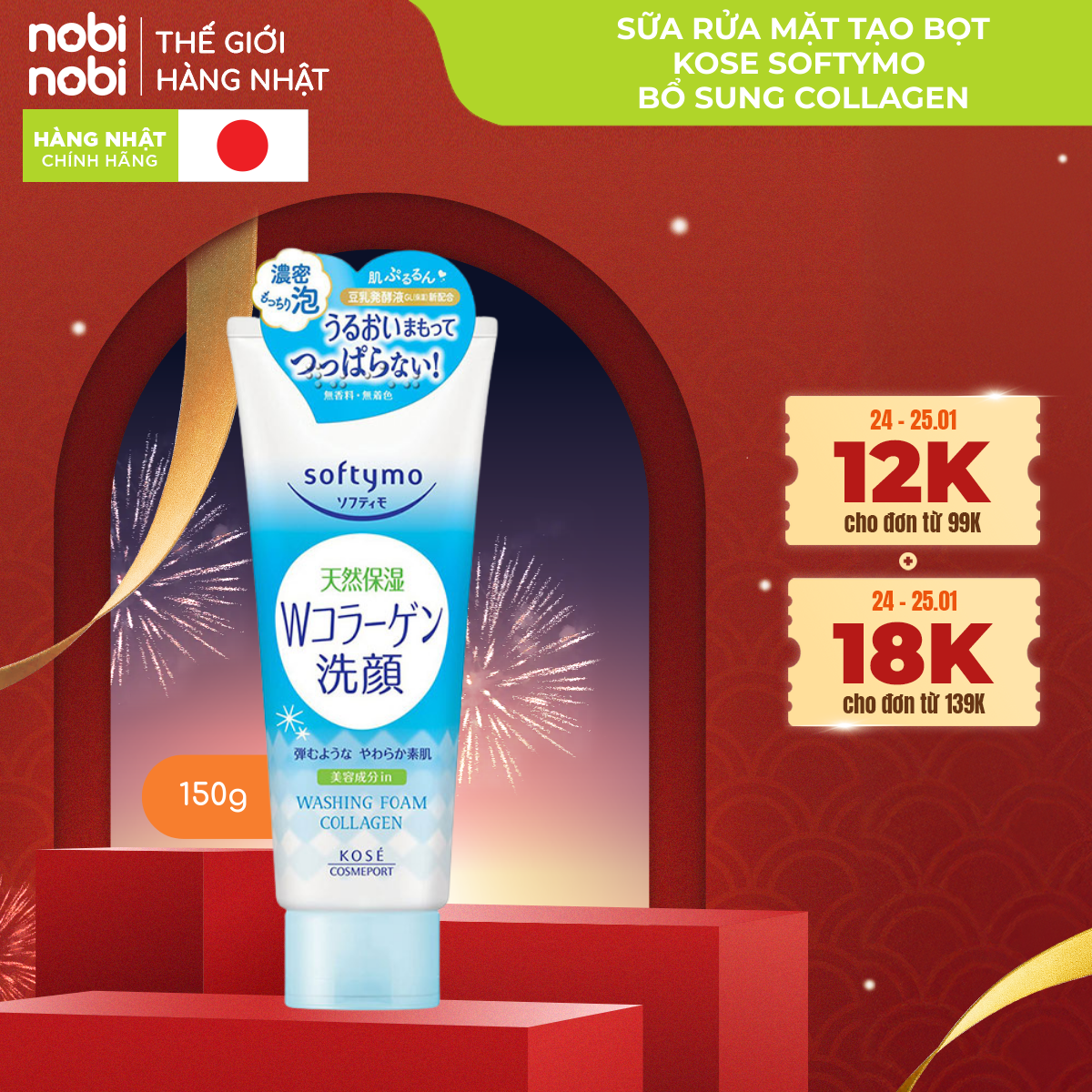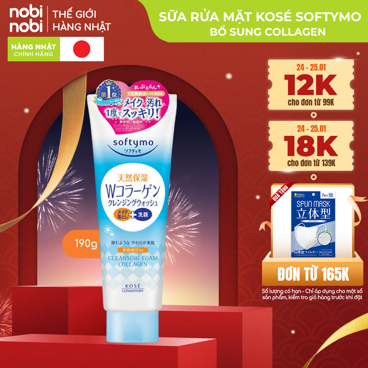 Sữa Rửa Mặt & Tẩy Trang Kosé Softymo Collagen: Bổ sung collagen