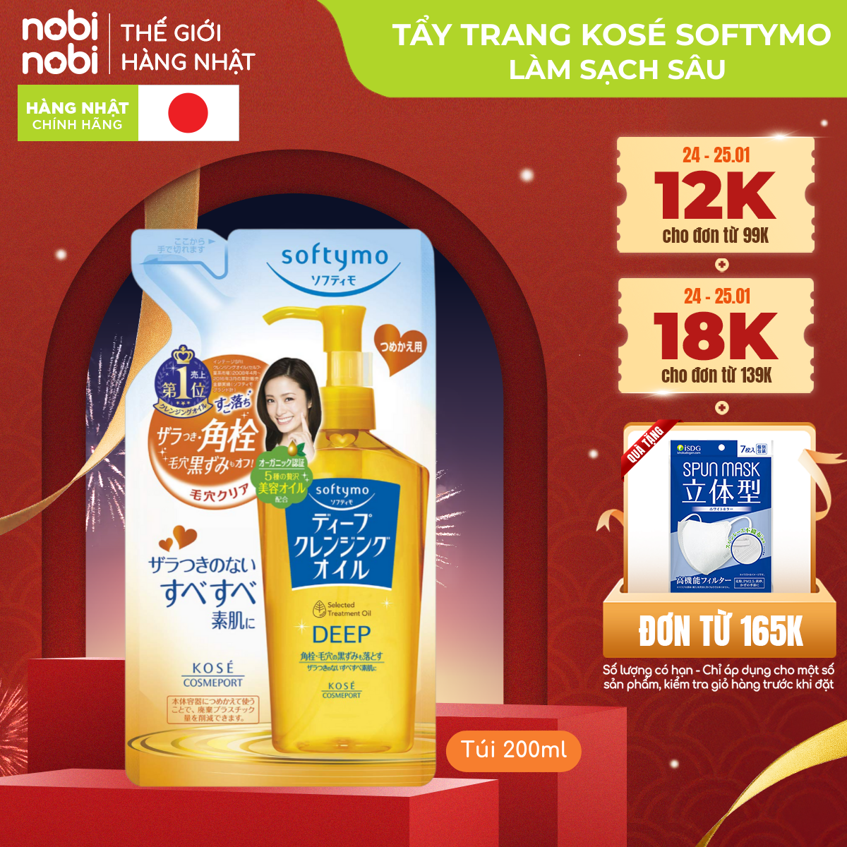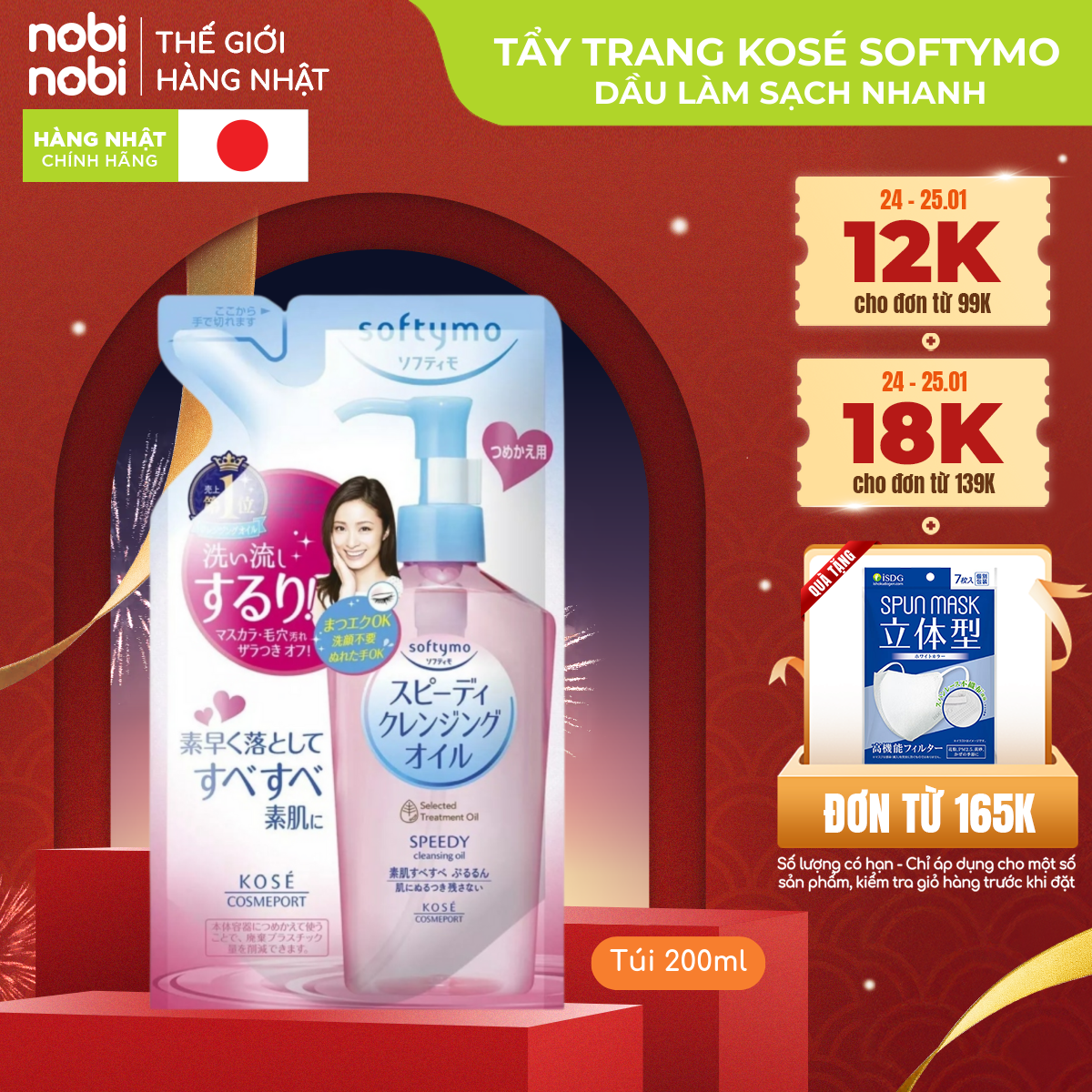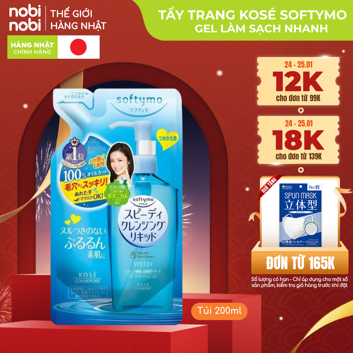 Khăn Ướt Tẩy Trang Kose Softymo Làm Sạch Nhanh và Tiện Lợi Bổ sung Collagen 12 miếng