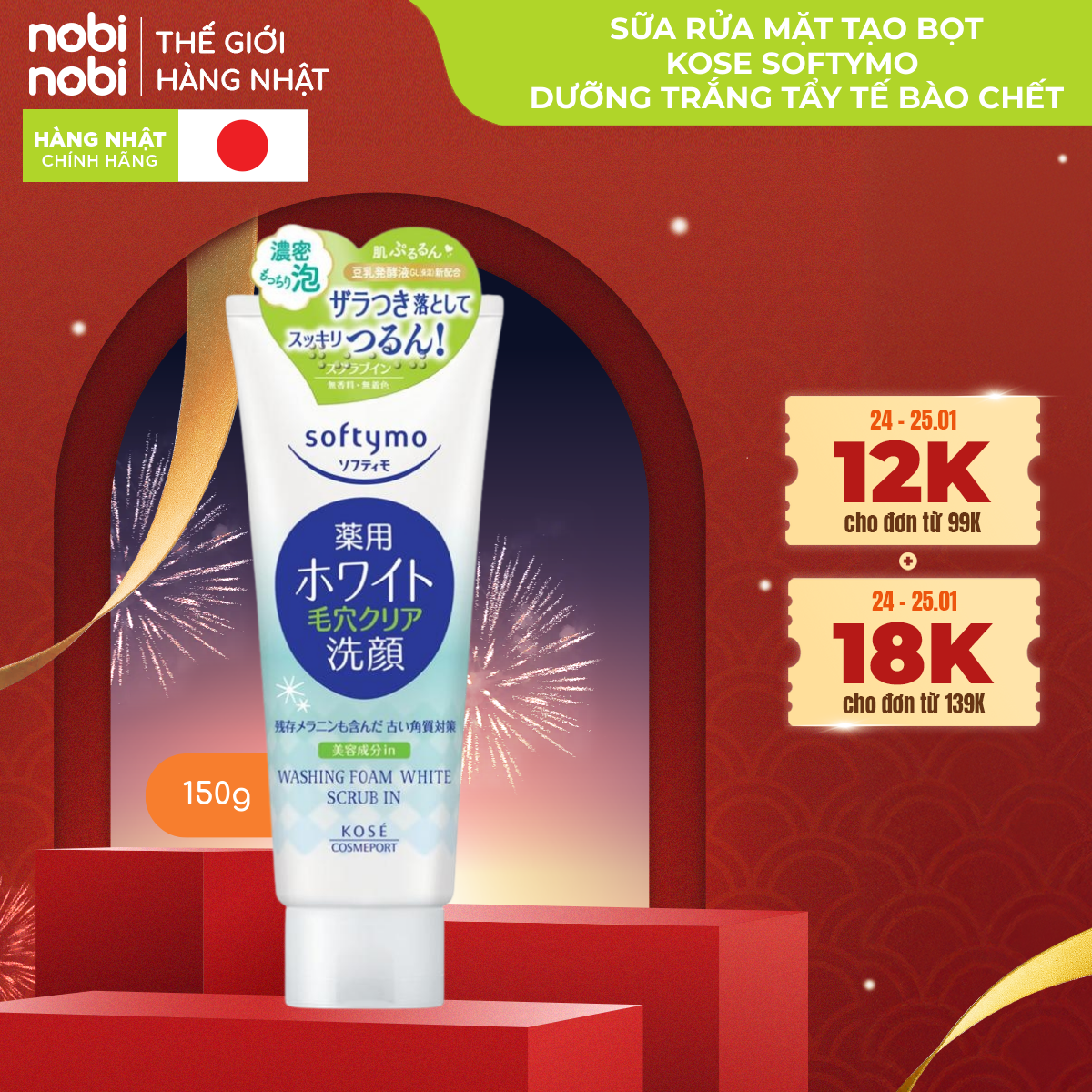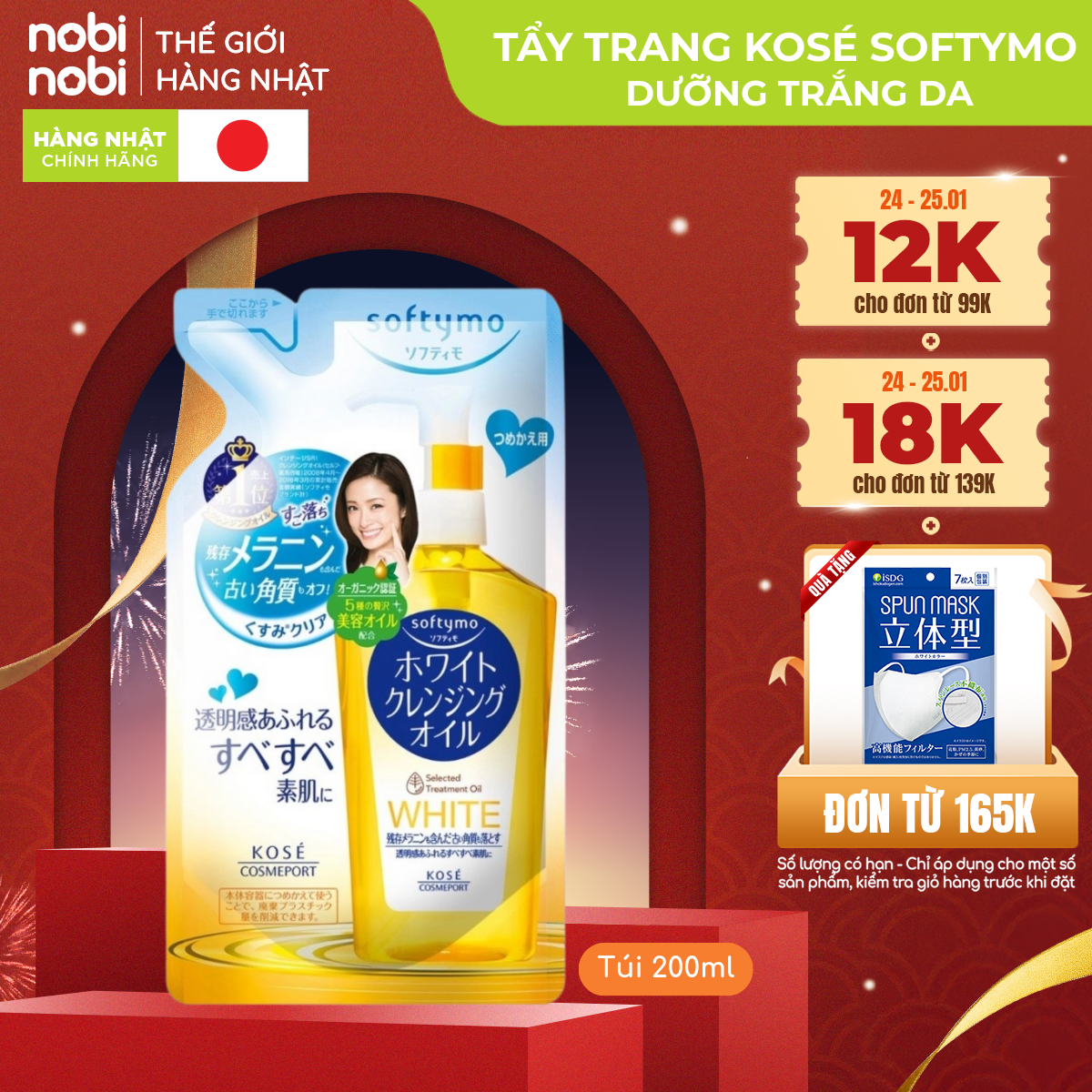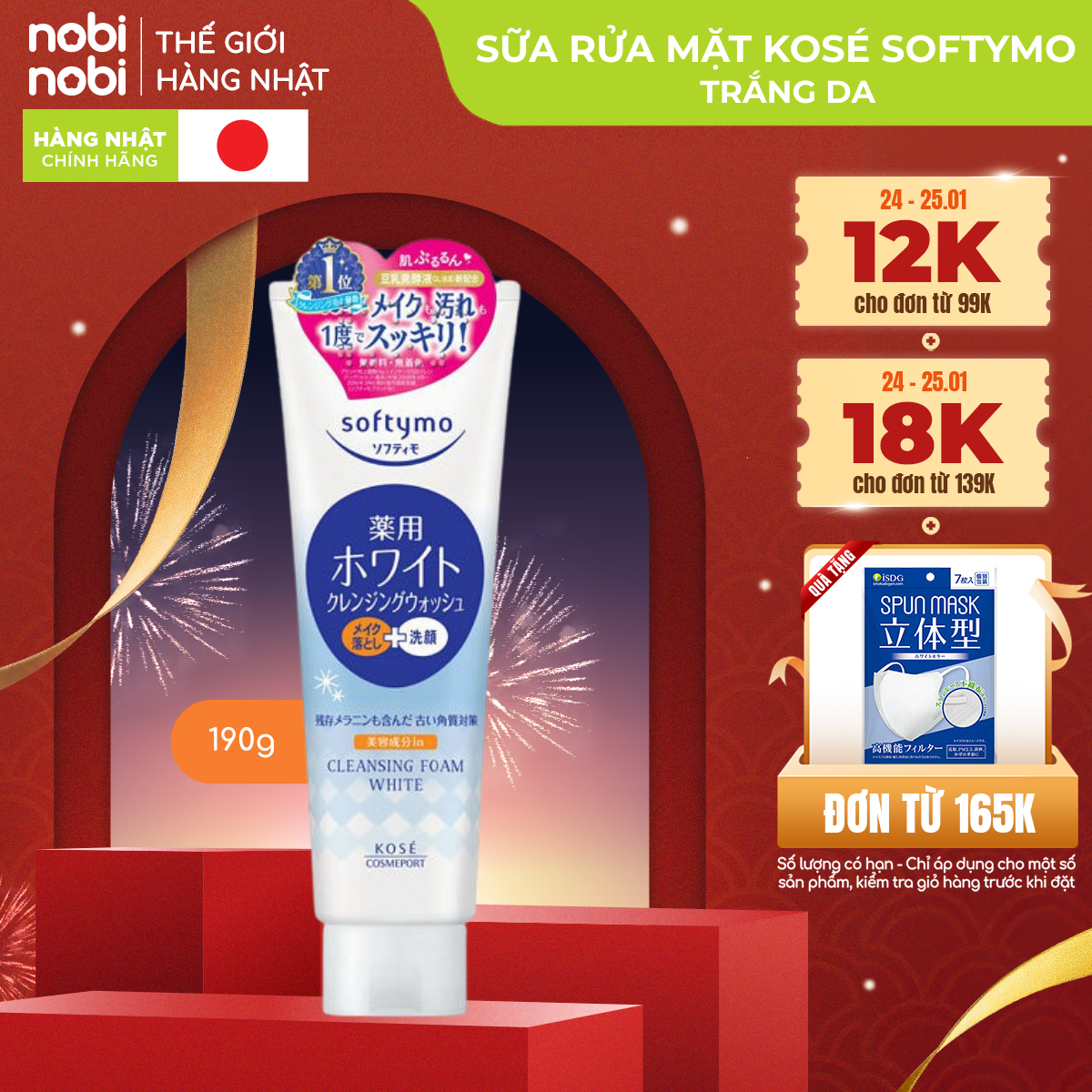 Khăn ướt tẩy trang dưỡng trắng mịn Softymo của hãng Kose có tác dụng làm sạch bụi bẩn và các lớp tẩy trang, đồng thời dưỡng trắng mịn nhờ bổ sung tinh chất vitamin.