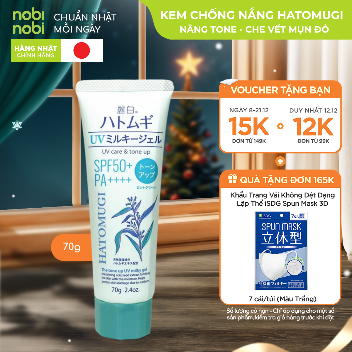 Kem Chống Nắng Reihaku Hatomugi Nâng Tông và Dưỡng Ẩm Cho Da SPF 50+ PA++++ Xanh 70g