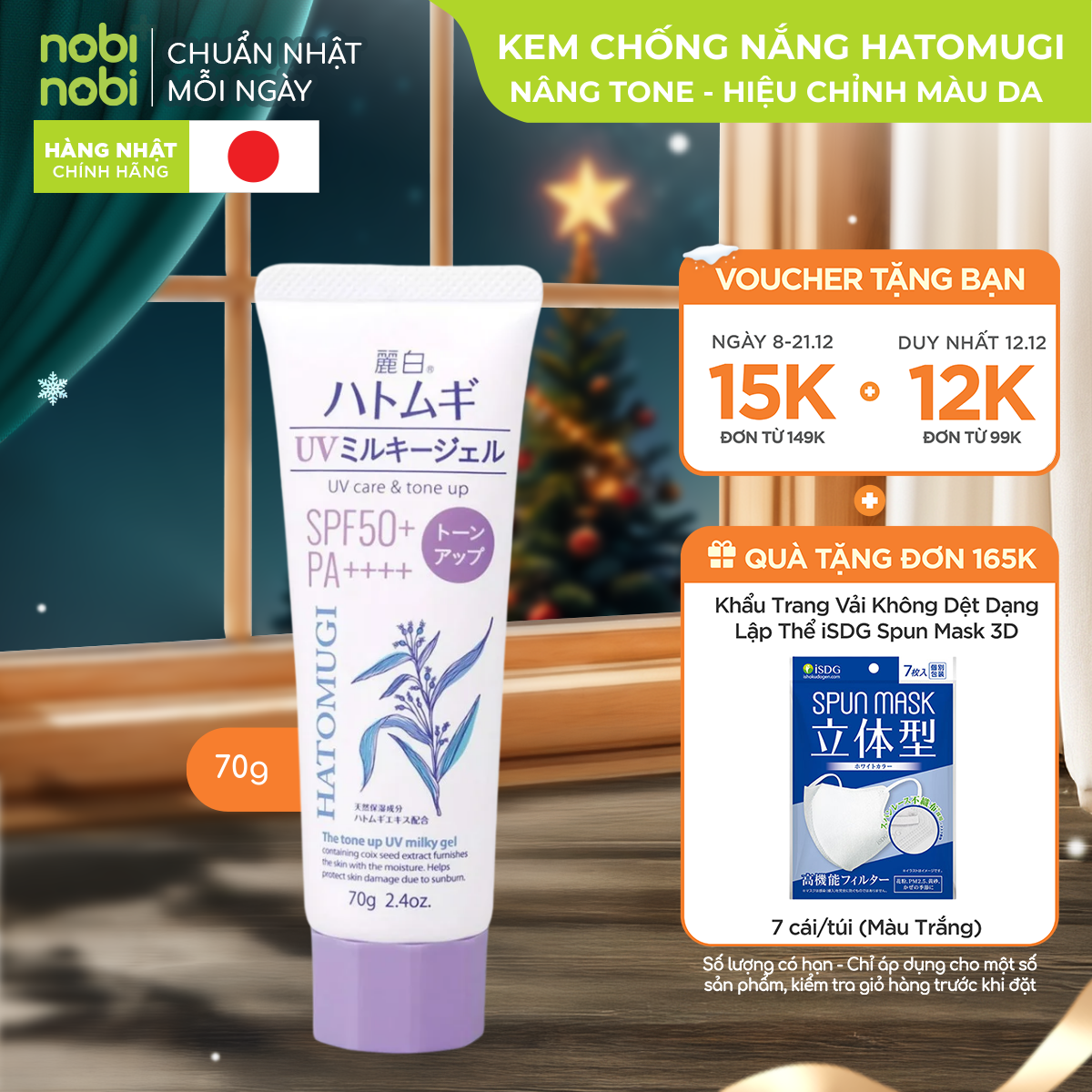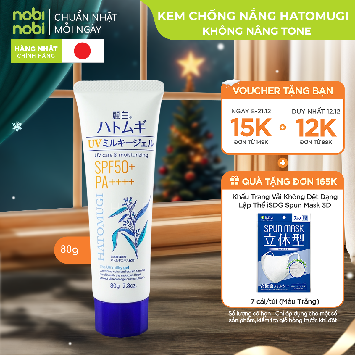 Kem Chống Nắng Reihaku Hatomugi Nâng Tông và Dưỡng Ẩm Cho Da SPF 50+ PA++++ 80g