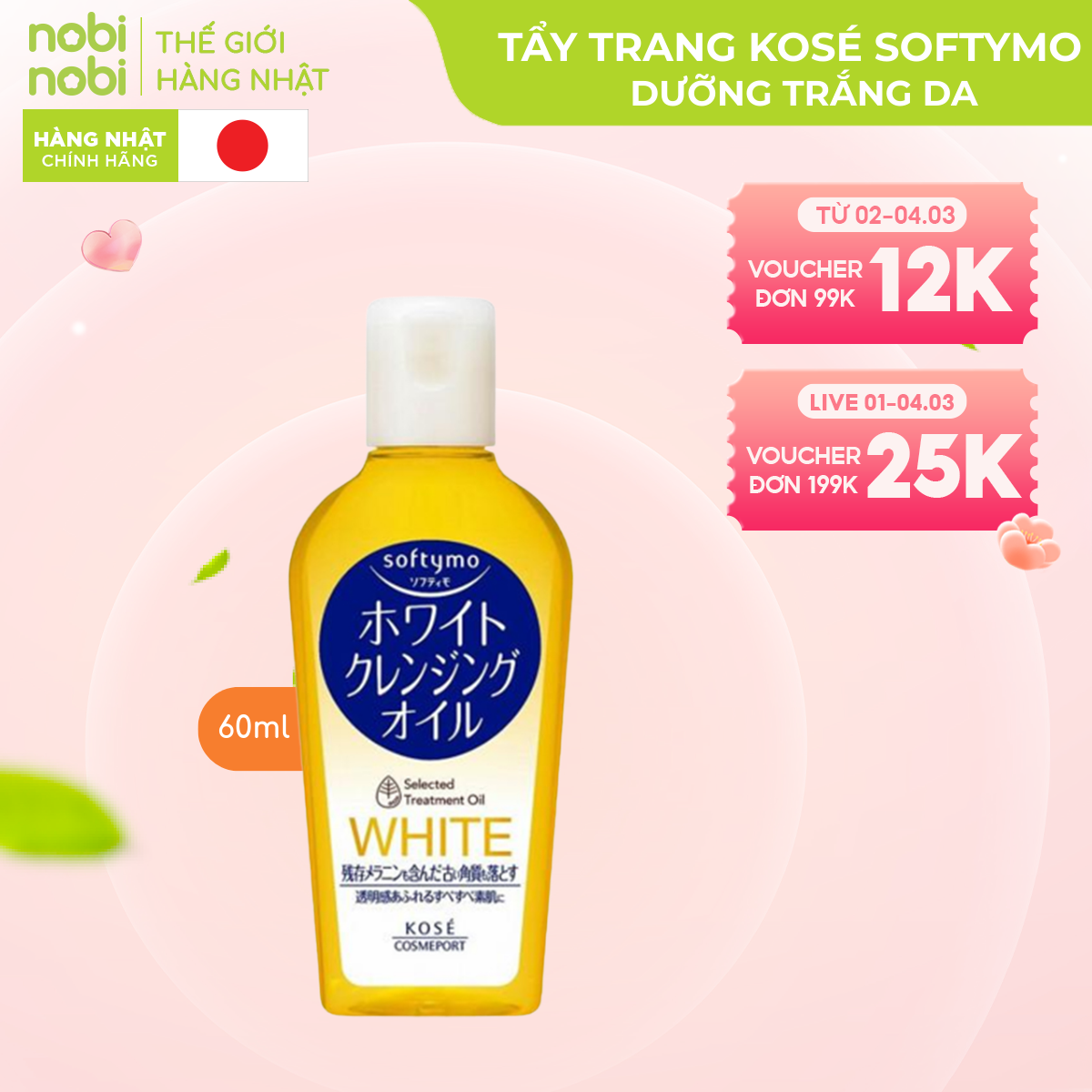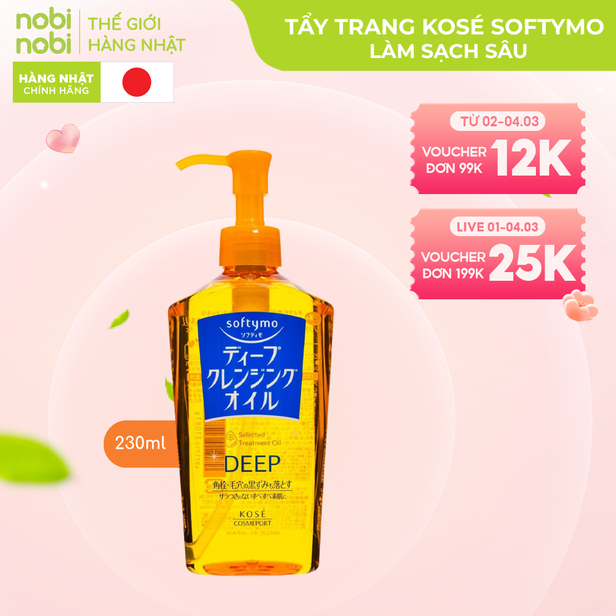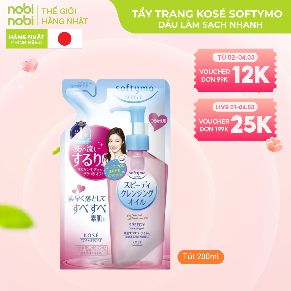 Kosé Softymo Cleansing Oil - dòng dầu tẩy trang đình đám từ Nhật Bản, mang đến giải pháp làm sạch da hiệu quả, an toàn và dịu nhẹ cho mọi loại da. Với công thức độc đáo từ 5 loại dầu thiên nhiên, Kosé Softymo nhẹ nhàng loại bỏ lớp trang điểm dày cộm, bụi bẩn và dầu thừa, đồng thời dưỡng ẩm sâu, giúp da mềm mại và mịn màng.