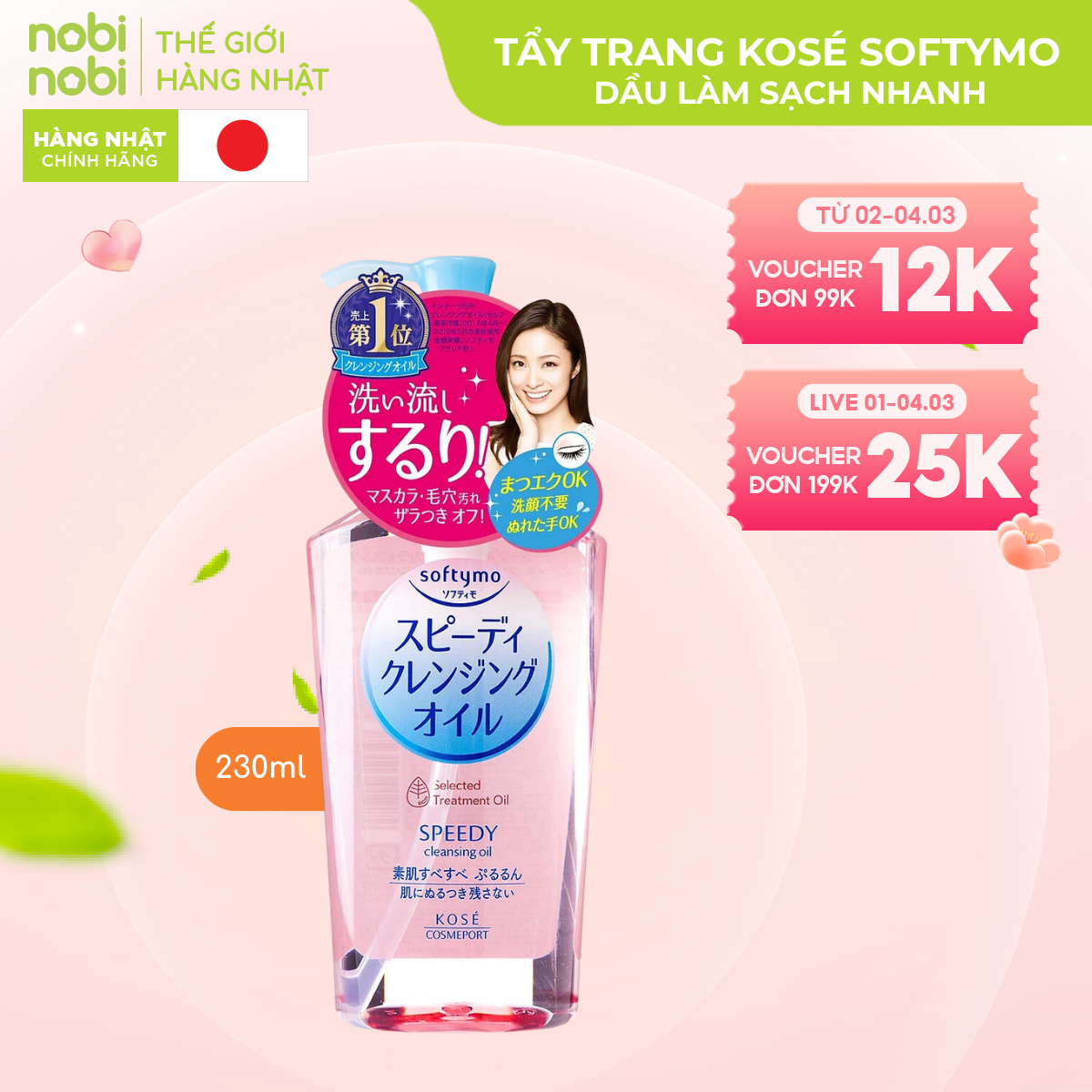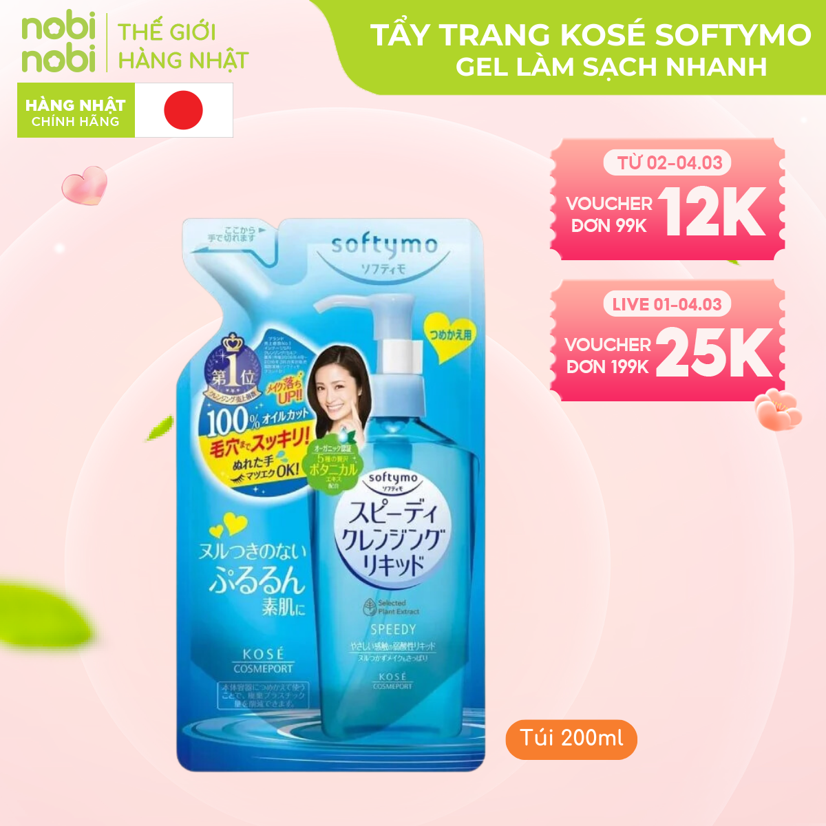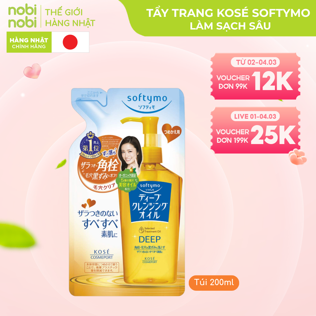 Kosé Softymo Cleansing Oil - dòng dầu tẩy trang đình đám từ Nhật Bản, mang đến giải pháp làm sạch da hiệu quả, an toàn và dịu nhẹ cho mọi loại da. Với công thức độc đáo từ 5 loại dầu thiên nhiên, Kosé Softymo nhẹ nhàng loại bỏ lớp trang điểm dày cộm, bụi bẩn và dầu thừa, đồng thời dưỡng ẩm sâu, giúp da mềm mại và mịn màng.